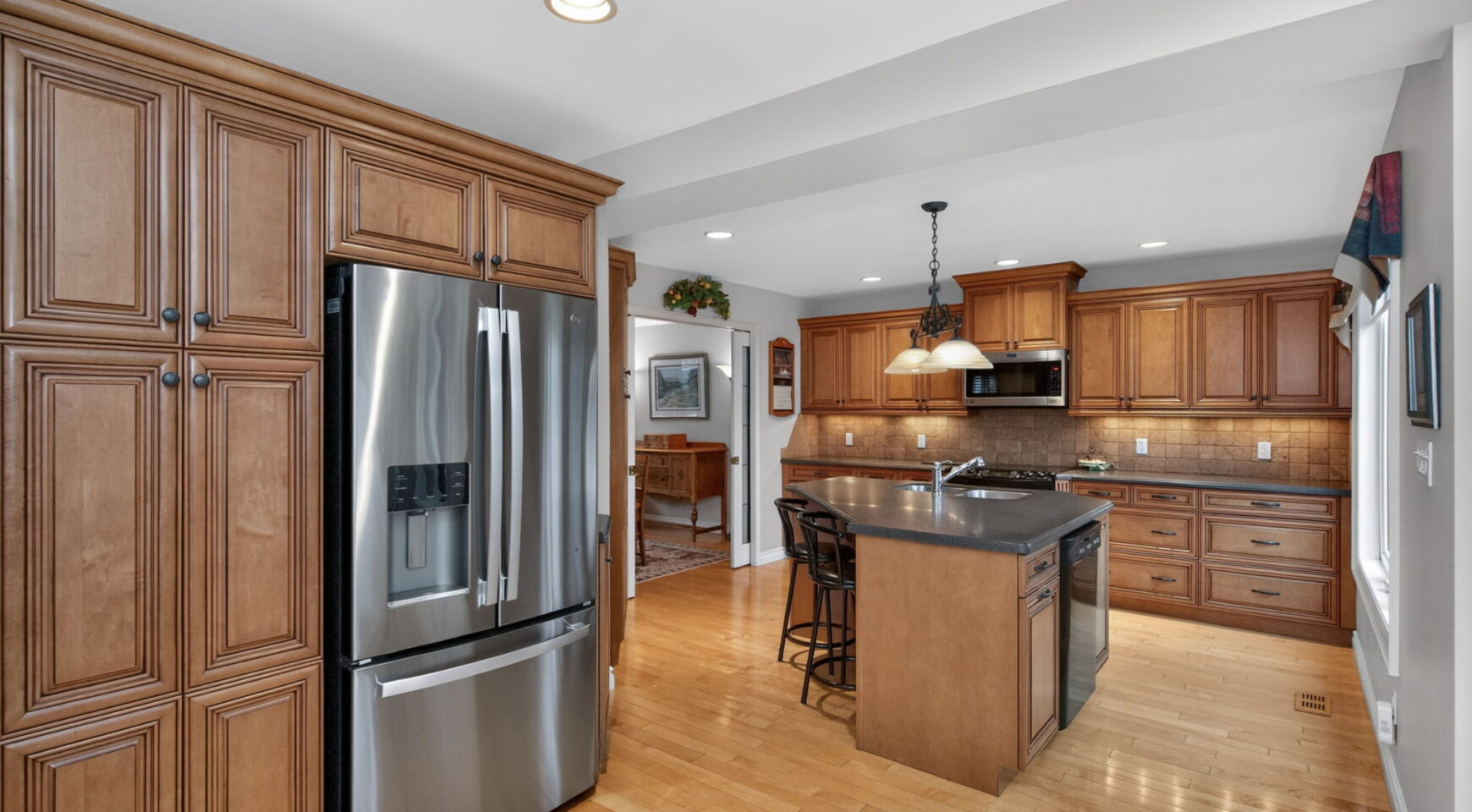 You will Love this stunning Two-Storey Executive home in the sought-after Midhurst area offering the perfect blend of comfort, space, and convenience for professionals and large families. This home features 4 spacious bedrooms and 2.5 baths, the home boasts an extra-large primary suite with an updated ensuite and walk in closet, Large Kitchen with Island with ample cupboard and prep space and beautiful hardwood floors throughout the main level. Enjoy cozy evenings with a main floor living room, family room with gas fireplace and the convenience of main floor laundry. The fully finished basement with an a second gas fireplace provides additional living space with rec room, office space and tons of storage, while upgrades like a built-in Generac generator, central vac, Owned on demand HWT, some automatic blinds, water softener, central air, built in sprinkler system, and natural gas BBQ hookup add exceptional value. Situated on a large, landscaped lot on a quiet, non-through street, his very private property also includes an attached inside entry double car garage with showroom-quality garage floor and storage needs. Ideally located just a short drive to shopping, entertainment, skiing, parks, and schools, this home truly checks all the boxes.