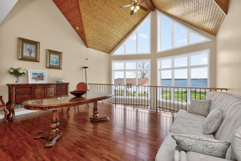 The property has been thoughtfully designed and overengineered to maximize natural light and connection to the water. Expansive floor-to-ceiling windows span both levels on the waterfront side, creating bright, open living spaces and showcasing the natural surroundings throughout the home.